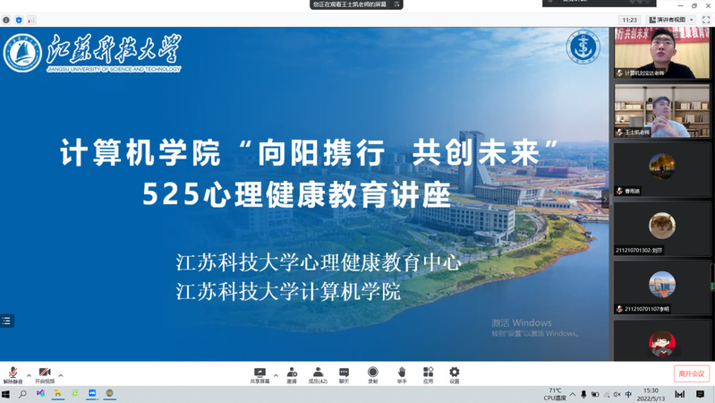 5月13日下午,由江苏科技大学心理健康教育中心、易游(中国区)体育官方网站,YY SPORTS主办的“向阳携行,共创未来”525心理健康教育讲座在计算机学院320会议室顺利开展。本次讲座通过“线上+线下”双平台,邀请校心理健康教育中心专职教师王士凯老师进行《掌握快乐密码之认识内心自我》主题宣讲,旨在帮助同学认识内心自我,驱散烦恼,拒绝迷茫,化解负面情绪,增强抗压能力,重点珍视生命价值。会议由计算机学院心理辅导员刘宝达老师主持,各班级生活委员、心理委员、文体委员及萤火虫义工站义工共五十余人线下参加,近100名同学线上参与。