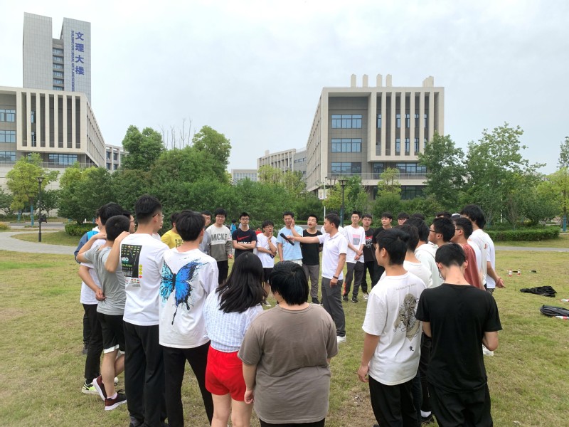 在户外素质拓展活动中,活动伊始,进行热身按摩操、抱团游戏“卖汤圆”,增加惩罚环节,活跃现场气氛,促进同学们相互了解,调动起大家的参与激情。