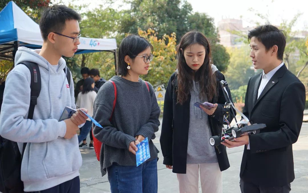 科技嘉年华现场展出了2018-2019年度十余项优秀的科技作品,吸引了校内许多师生前往参观。