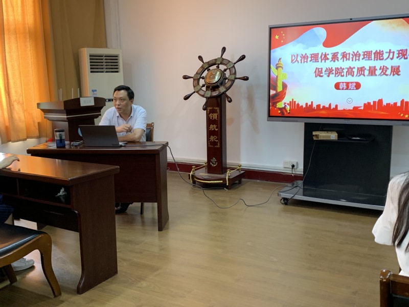 韩斌书记的党课主题是“以治理体系和治理能力现代化促学院高质量发展”。围绕党的十九届四中全会的精神,结合学院工作实际情况,韩斌书记主要讲了三个方面的内容:第一,党的十九届四中全会精神要点;第二,推进治理体系和治理能力现代化的重大意义;第三,实现学院高质量发展。