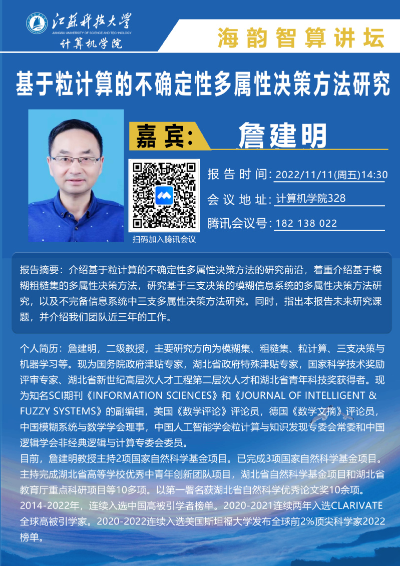 海韵智算讲坛:(詹建明)基于粒计算的不确定性多属性决策方法研究
