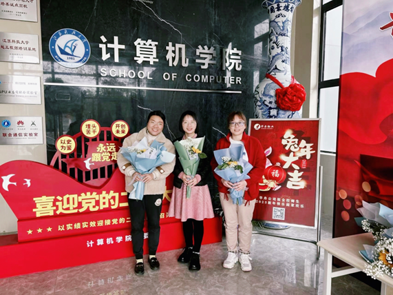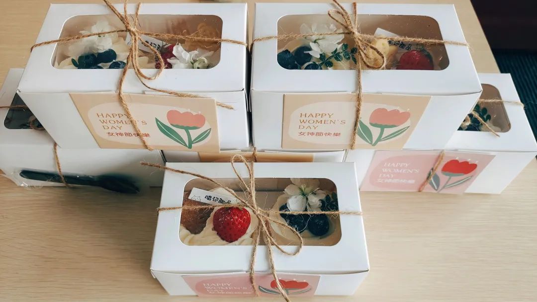 计算机学院在学院楼一楼大厅开展三八妇女节节日慰问活动,学院为每位女教师安排了一束鲜花、一盒小甜品蛋糕,寓意春暖花开、甜甜蜜蜜、工作顺利,借此机会感激学院女教师们为学院高质量发展做的突出贡献。