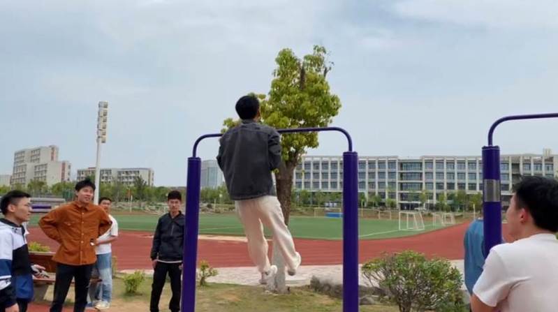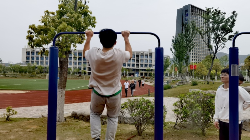 活动开始在西区操场健身器材处,同学们以团队为单位,共同挑战了引体向上的任务。通过协作和不断尝试,同学们终于克服自身重力,成功完成了五个符合标准的引体向上,身心愉悦,信心倍增。