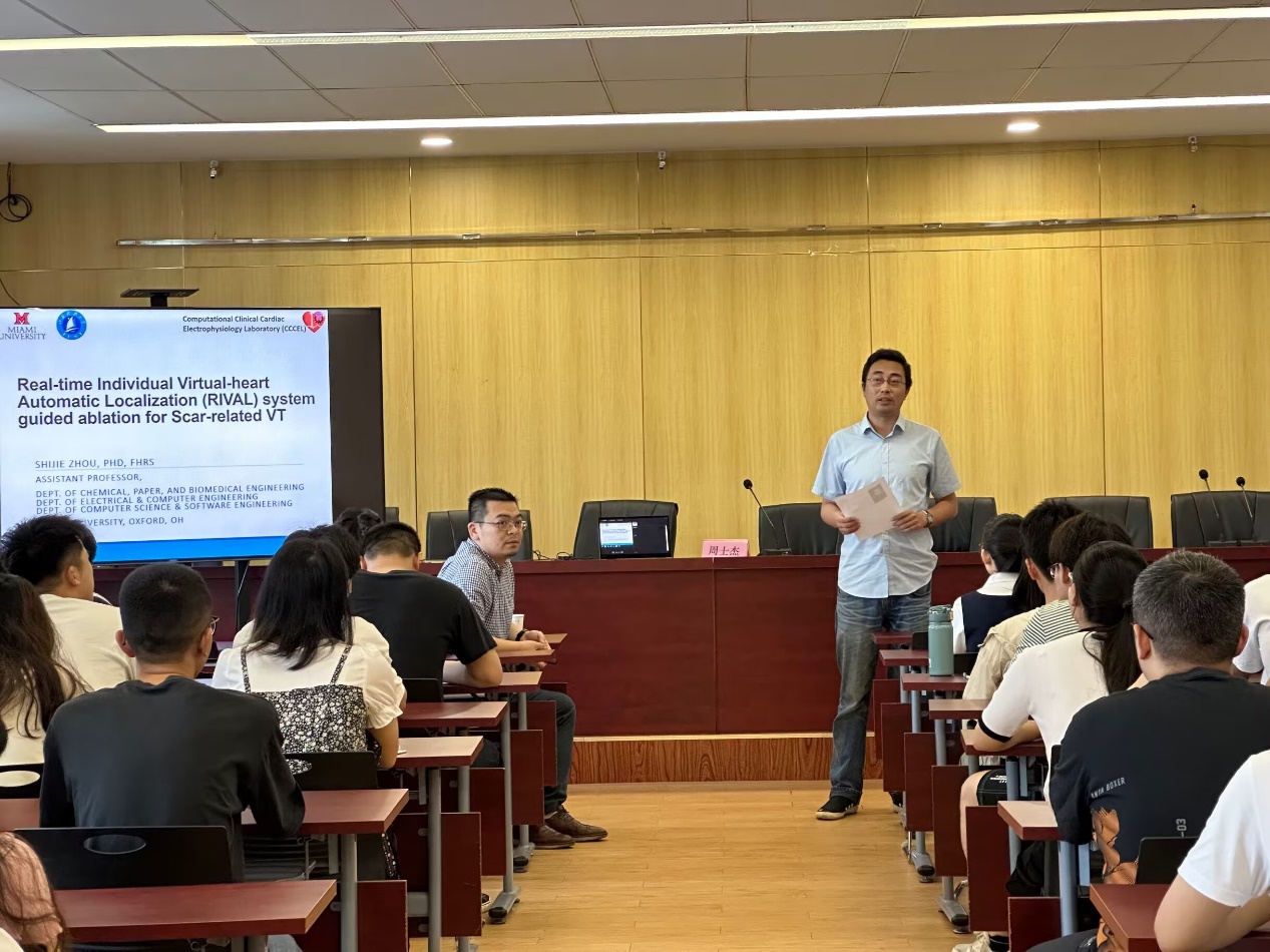 于化龙首先对周士杰教授表示热烈欢迎,并简要介绍了计算机学院学科设置与科研特色。周士杰教授进行了简短的自我介绍,他目前在美国迈阿密大学生物医学工程专业担任常任轨助理教授和博士生导师,兼计算临床心脏电生理实验室主任。