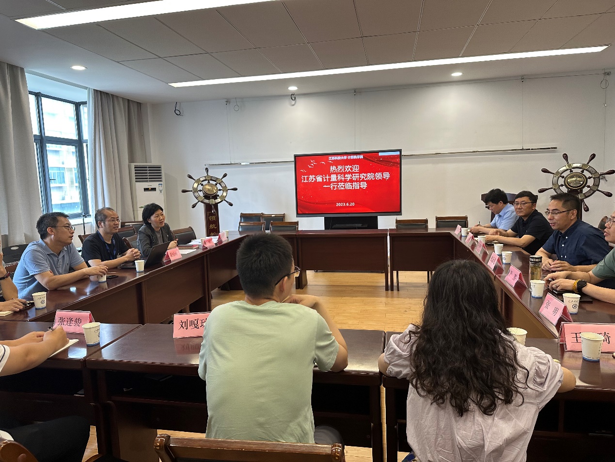 6月20日上午10点,江苏省计量科学研究院人力资源部部长唐颖等四位领导来到计算机学院进行调研交流。交流会在计算机学院328会议室召开,学院各系部主任、科研团队骨干教师等10余人参加了本次活动,会议由副院长史金龙主持。