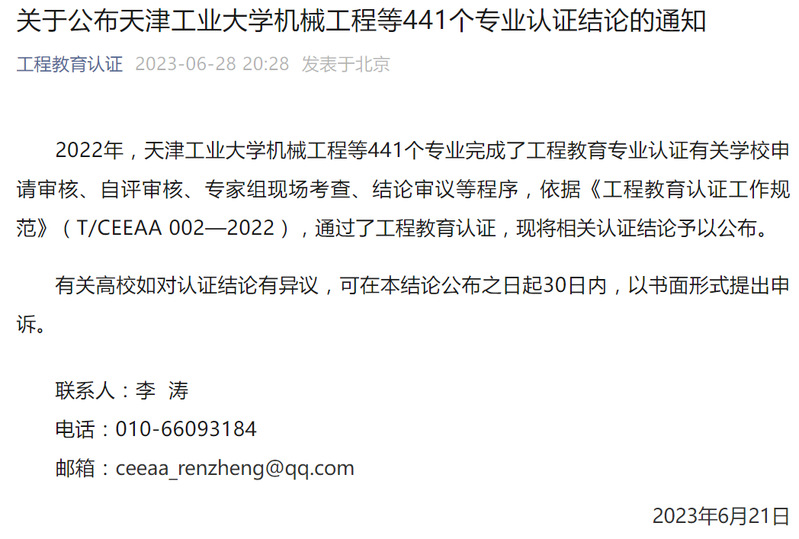 近日,中国工程教育专业认证协会发布《关于公布天津工业大学机械工程等441个专业认证结论的通知》。易游(中国区)体育官方网站,YY SPORTS的计算机科学与技术专业名列其中,认证有效期为6年(2023年1月至2028年12月)。这标志着计算机科学与技术专业的人才培养质量实现了国际实质等效,进入全球工程教育的“第一方阵”。