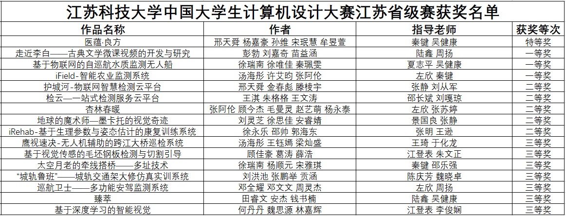 江苏科技大学在中国大学生计算机设计大赛江苏省级赛中再创佳绩