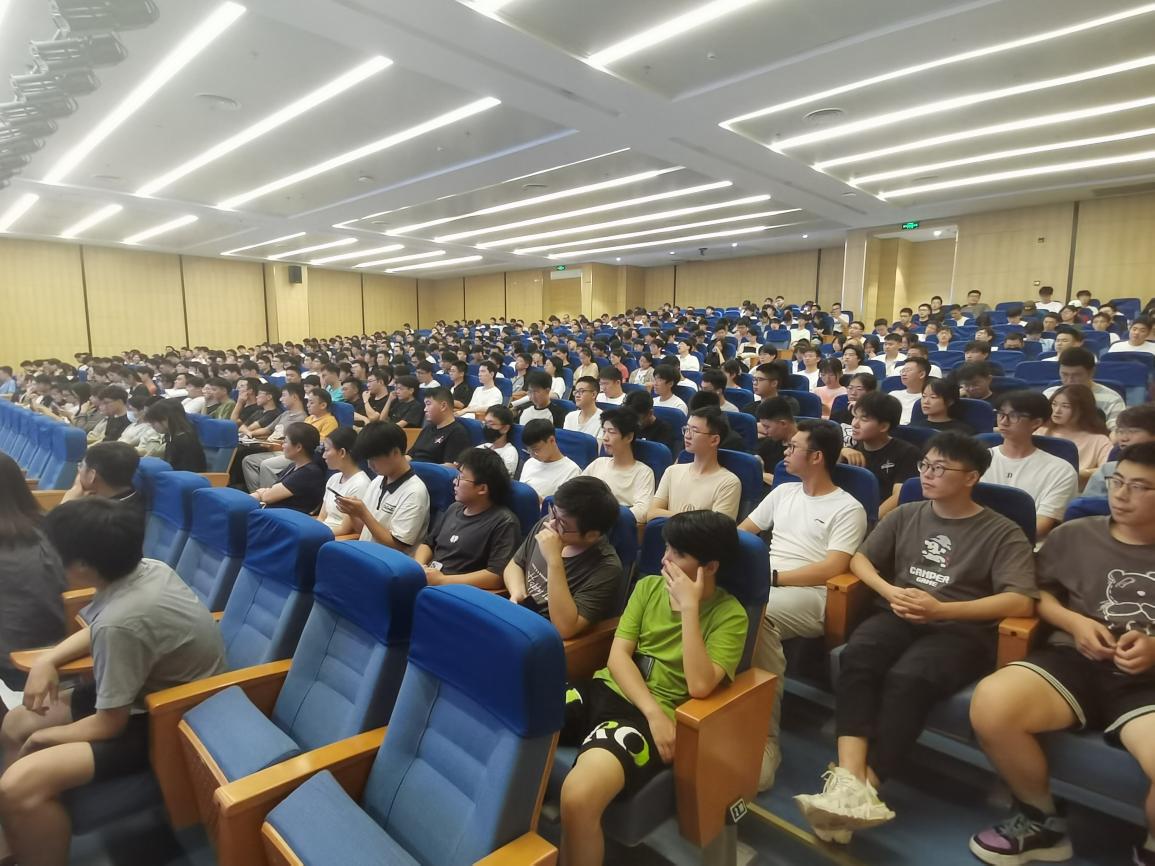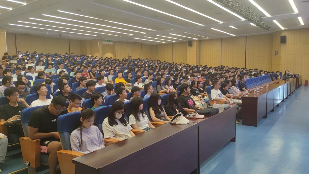 院长杨习贝作升学就业动员。杨习贝首先向同学们介绍了学院2023届毕业生升学就业的情况。他建议考研的同学要学会提前调研,充分获取信息,在进行研究生报考的学校和专业选择时,要结合学校的专业实力、学科发展前景、导师配备等因素,选择适合未来发展的学科平台继续深造,也呼吁大家积极报考江科大。同时,对于就业的同学,杨习贝表示同学们要树立正确的就业观念,既要提高就业实战技能,又要积极把握秋招的黄金就业时机,在充满变化的时代,思考更要具备前瞻性、全局性。