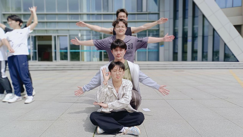 随后大家又马不停蹄的赶到了求索园处,接受主持人的挑战,在“你说我做”的游戏中展现出了无限创意和想象力。反动作场面充满了欢乐和互动的氛围。
