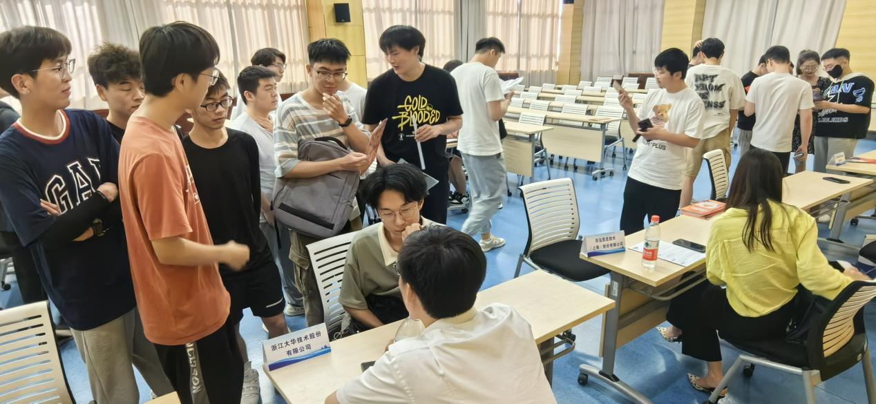 推介会结束后,有求职意向的学生积极前往B104和企业代表进行面试交流,同学们对于企业实习热情高涨,企业代表们和同学就实习内容、实习时间等进行具体沟通。