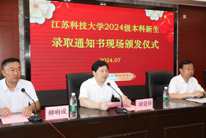江苏科技大学党委常委、副校长胡爱祥宣读了江苏科技大学2024年江苏省丹阳高级中学录取学生名单,并对录取专业进行了简要介绍。
