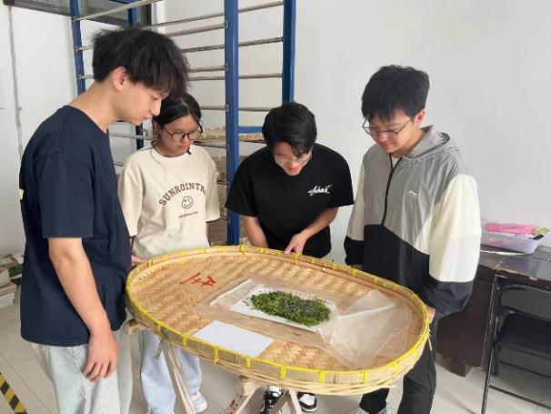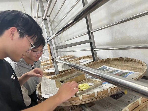 蚕,这一自古以来便与人类文明紧密相连的小生命,其生长过程如同一部生动的自然纪录片。在晨曦微露的蚕室里,计算机学院的实践队员们迎来了他们探索桑蚕文化的第一站。这一环节,老师为成员们展示了蚁蚕、幼虫、蛹以及成虫等各个阶段蚕的形态以及相应的讲解,为成员们提供的直接的视觉体验,近距离感受生命从微小到壮大的壮丽篇章。
