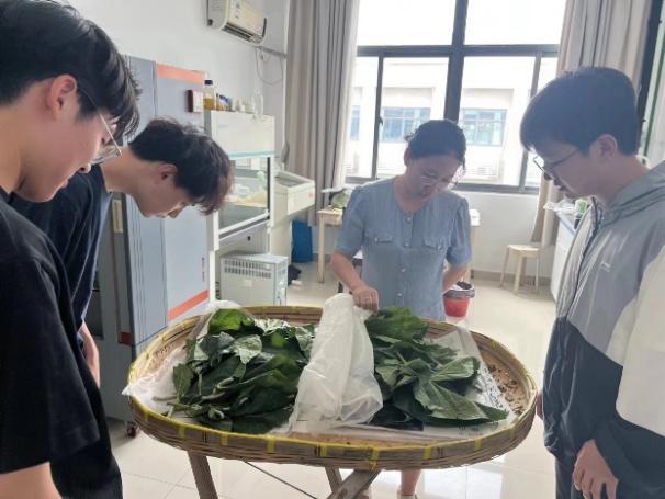 实践队还前往江苏科技大学的生物技术学院,亲身体验了白玉蚕的解剖实验过程。在严谨的实验环境中,实验员耐心地向队员们展示了蚕的内部结构,从表皮到中肠,再到脂肪体。成员刘昱缨感叹:“亲眼见证蚕宝宝从外而内的精妙结构,不仅让我深刻感受到了生命的复杂与奇妙,更体会到了科学研究的严谨与细致。”