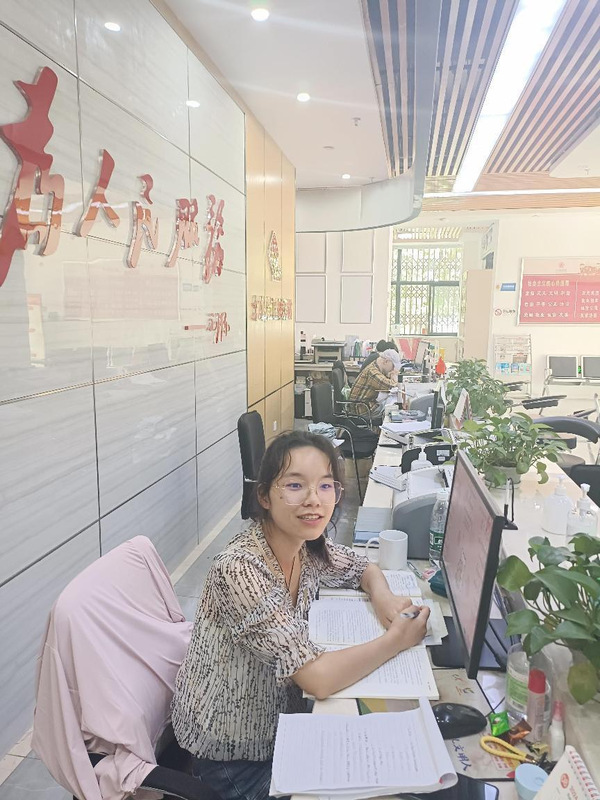 工作中,领导的工作人员很热情向郝俊燃讲解工作内容,对于不懂的地方她也会细心指导,来问访的老人也和蔼可亲,郝俊燃与她们之间的交流也愈发熟练。看到能为社区里的人员服务,郝俊燃感到尤为欣慰,尤为开心。