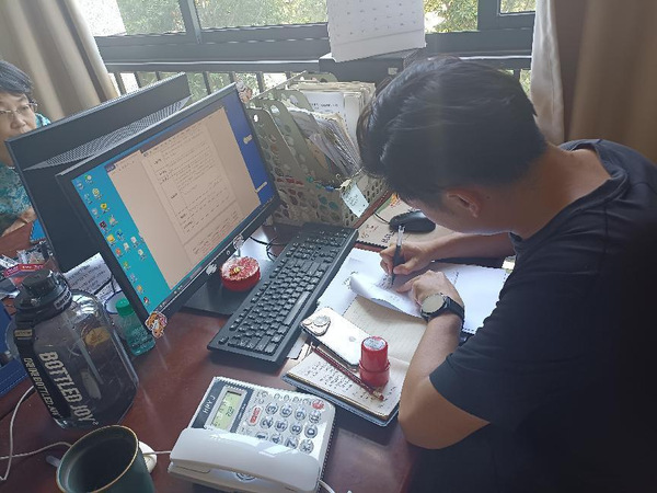 8月8日下午3点,小组成员郝俊燃在短暂午休过后再次来到社区工作。当我们的领导人员到后,她指挥我们继续帮忙工作,接待一些住在附近的老人,帮助他们登记信息,聆听他们的诉求并转告相应的工作人员。