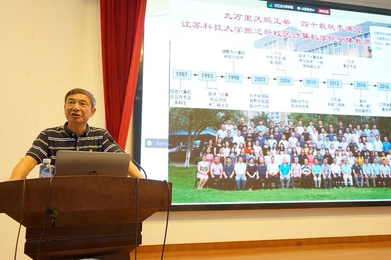 10月16日晚19:00,计算机学院邀请了原校长助理、对外合作处处长、校友会秘书长生佳根教授,在梦溪校区演讲厅围绕校史校情、优秀校友、爱校荣校和理想信念四个重要方面开展了以“扬起青春的风帆”为主题的2024级新生转型教育课第一讲。本次讲座由计算机学院党委副书记吴健康主持,2024级计算级类专业学生在现场聆听,软件工程和人工智能专业学生在教室内通过网络直播聆听讲座,全体新生辅导员共同参与。