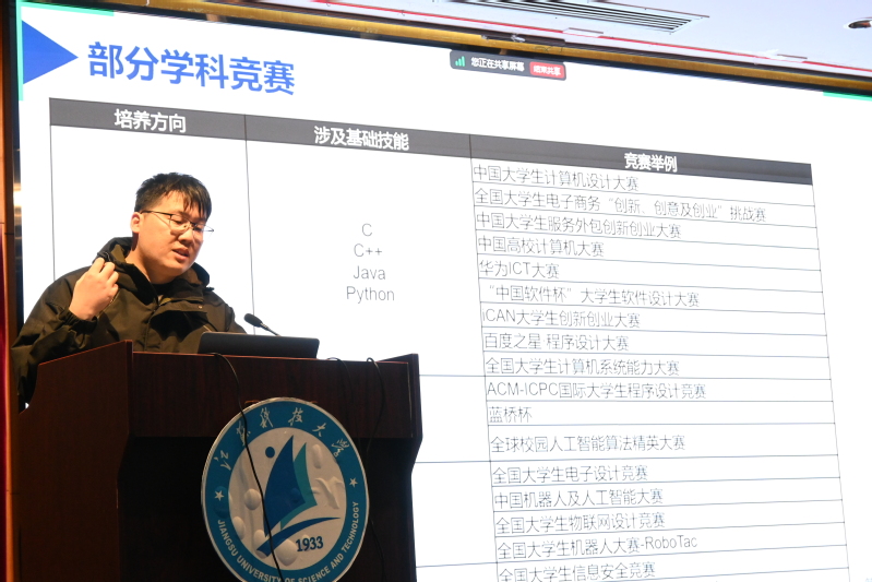 在分析行业现状的同时,束鑫老师还回顾了学校软件工程专业的发展历程。从2010年首次招生以来,该专业历经十余年积淀,不断优化教学模式,强化师资力量,取得了“江苏省一流专业”这一殊荣。束鑫老师表示,这离不开专业团队的辛勤付出和学生们的共同努力。通过先进的教学体系和丰富的实践平台,学校在为学生打牢编程基础的同时,也注重培养他们的创新能力和实践能力,助力他们在软件领域脱颖而出。