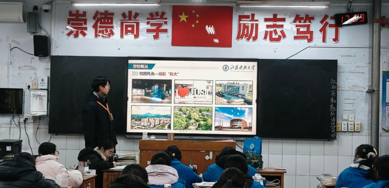 活动期间,实践团成员精心准备了内容丰富的宣讲材料。他们以亲身经历为蓝本,生动地介绍了江苏科技大学的校园文化底蕴,特色专业,学院成就以及丰富多彩的社团生活。在宣讲中,通过精美的PPT展示了江苏科技大学独具特色的船舶与海洋工程专业的教学设施与实践场景,让同学们对这一特色专业有了直观而深刻的认识,激发了大家对相关领域的浓厚兴趣。