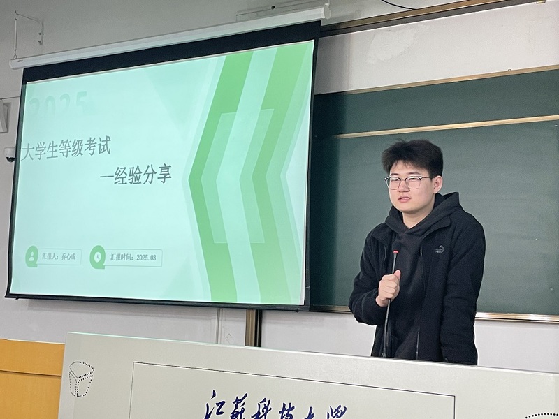 乔心成同学以“大学生等级考试经验分享”为主题,细致地介绍了英语四六级、计算机二级以及普通话水平测试的备考策略。他还特别提醒有考公考编意向的同学,可以提前规划并认真准备普通话水平测试。乔心成鼓励同学们充分利用等级考试这一平台,提升自身综合能力,为未来职业发展奠定坚实基础。