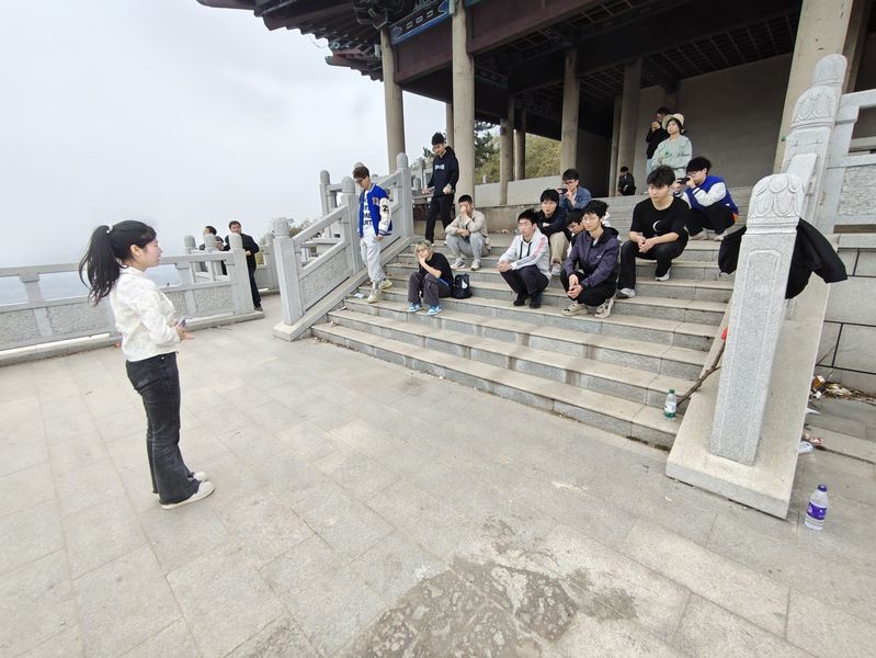 活动核心聚焦山顶“英雄事迹故事会”,大家围坐福因阁外,以“一人一故事”形式讲述革命先辈的壮烈篇章。一名学生声情并茂地诵读了抗日英雄赵一曼的绝笔信:“母亲不用千言万语来教育你,就用实行来教育你……”现场学子无不动容,多名参与者主动补充杨靖宇雪原抗战等其他英雄事迹。