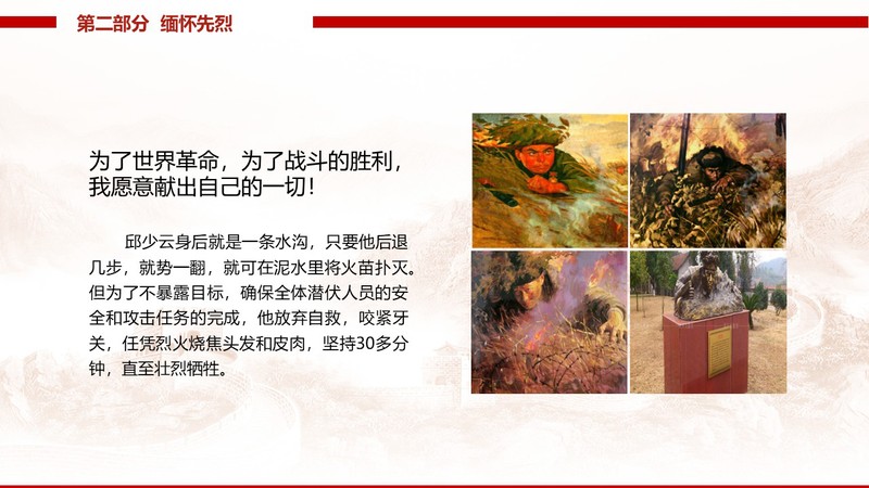 线上同步开设“云端追思”平台,征集到 PPT、海报等作品 47 件,其中《缅怀先烈》《红星照耀中国》等作品以图文形式再现英烈精神。
