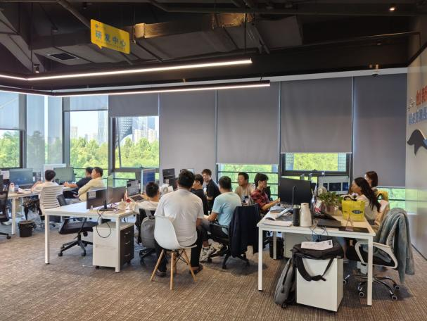 之后,双方在会议厅深入交流。技术主管靳志宾详细介绍了企业的研发团队(20%为研究生)、产品研发流程、人才梯队培养。他强调,企业的产品60%服务于海外市场,因此英语好的技术人员更受欢迎。同时具备现场开发能力的运维人才目前也较为缺乏。
