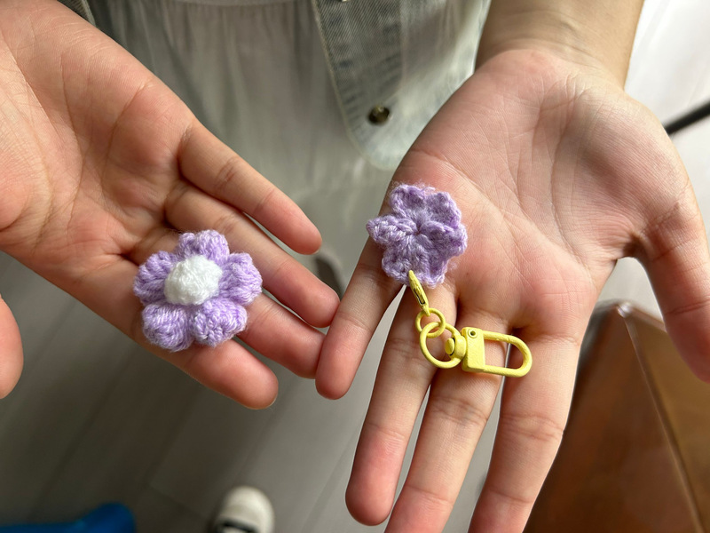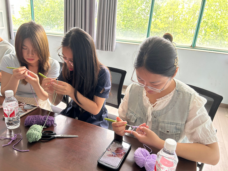 活动的顺利开展离不开2023级人工智能专业喻聪聪和余俊贤同学的悉心指导。她们从基础针法到复杂技巧,耐心解答每位同学的疑问,用专业与热情为活动增添了温暖与活力。
