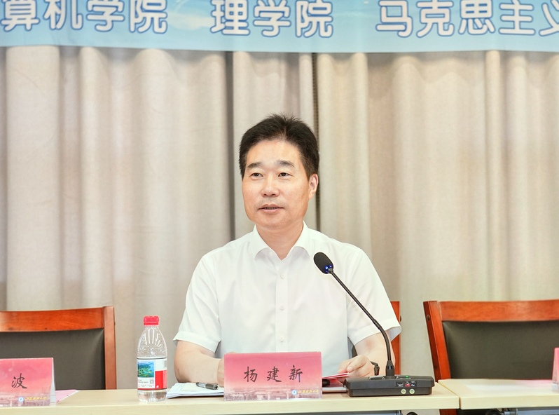 616日 ,计算机学院、理学院、马克思主义学院联合举办了“承母校之情 赴山海之约——2025届毕业生最后一堂主题班会”。校党委书记杨建新亲临现场,与师生共话青春、共寄未来。三个学院领导、辅导员及2025届毕业生代表40余人出席本次活动,活动由计算机学院党委书记高尚主持。